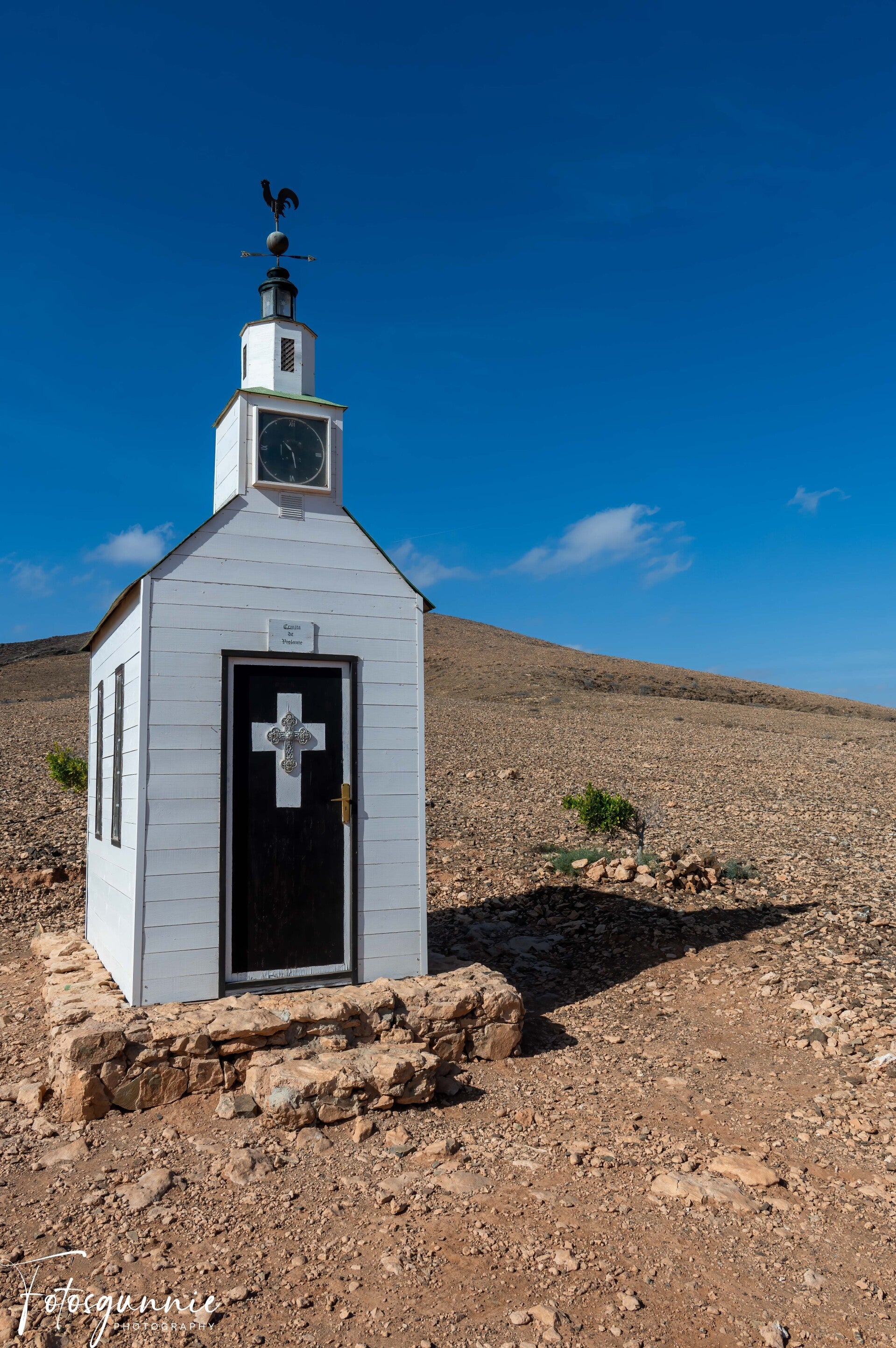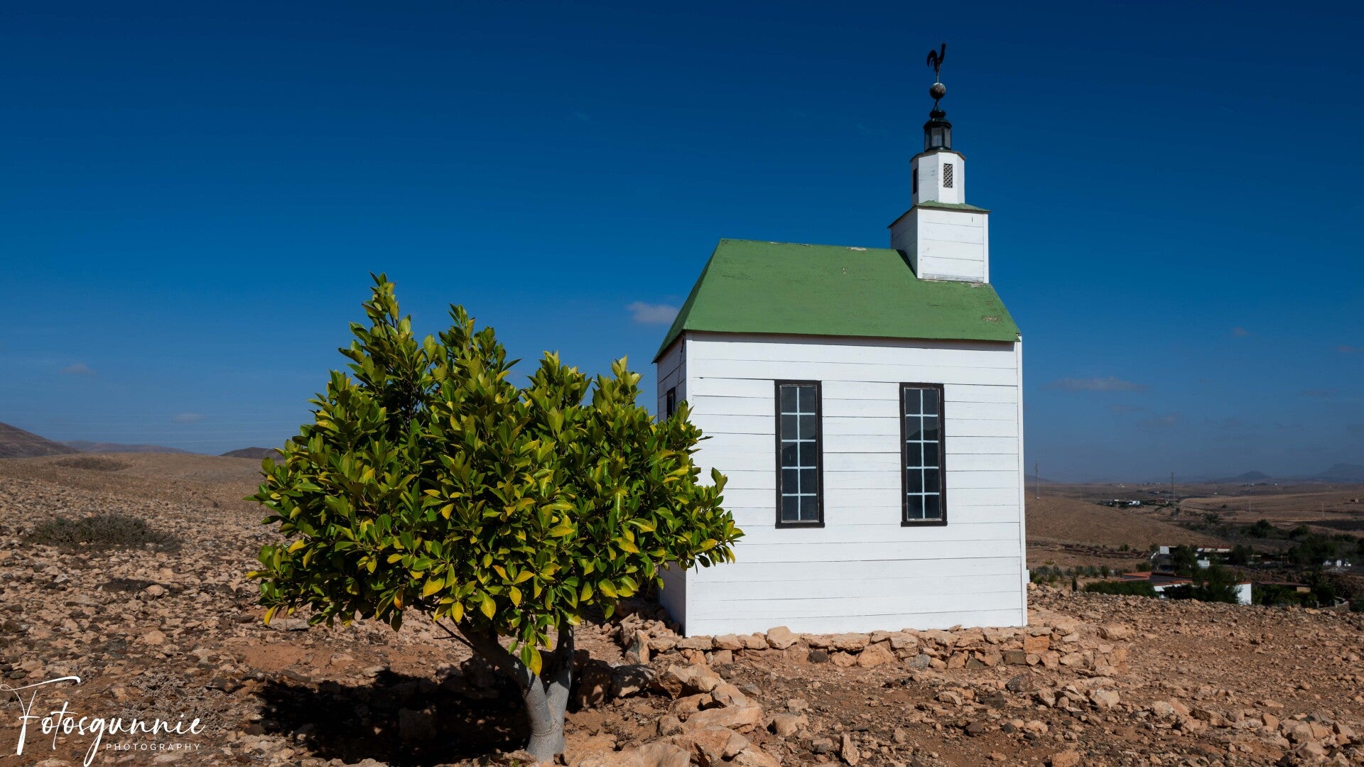 Omdat er in het kleine stadje Violante een even klein charmant kluisje is die charmant is, wit van kleur en groen dak. Met slechts twee ramen aan elke kant past hij perfect in de omgeving. Het heeft een stijl die verwijst naar Noord-Europa, en na overleg met Tuineje Toerisme vertellen ze me dat het is gebouwd door een buitenlander die in het gebied woont en eigenaar is van het land waar het zich bevindt; Hij deed het ter ere van zijn vrouw, zo voegen ze eraan toe, die stierf op het strand van Giniginámar en zeer toegewijd was aan de maagd die daarbinnen zit.